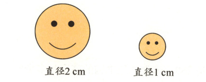 (2)两个笑脸的面积比是多少?这个比能与直径比组成比例吗?