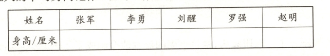 6. 在一次体检中,张军、李勇、刘醒、罗强、赵明五人的身高分别是145厘米、141厘米、146厘米、143厘米、140厘米。