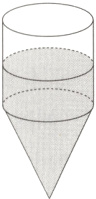 如图,在一个由圆锥和圆柱组成的高为8 cm的玻璃容器中加入一些水,并盖上盖子,水面高6 cm,圆柱和圆锥的高相等。当把这个玻璃容器倒过来时,水面高多少厘米?