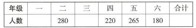 6.下面是实验小学今年各年级学生人数统计表,已知四年级的人数是三年级的$\frac{10}{9}$,六年级的人数比一年级的少$\frac{11}{20}$,填表。