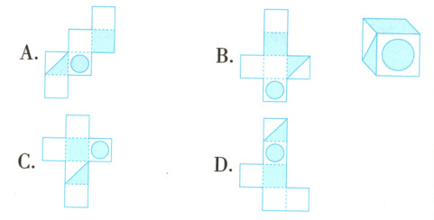 (3)(名校期末真题)如图所示的正方体,如果把它展开,可以是下列图形中的( )。