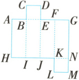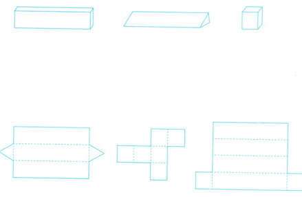 7.下面是一张长方形硬纸板。试把它们平均分成3份,使每份有5个小正方形相连,每份折起来正好是一个无盖的正方体纸盒。