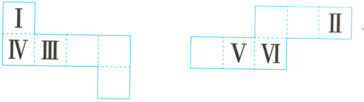 6.如图,一个正方体的上半部分涂上了蓝色,请在展开图上涂出其余的蓝色部分。