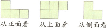 6. 用几个体积是1 cm³的小正方体搭成一个立体图形,从正面、上面和侧面看到的形状如下图,计算这个立体图形的体积。
