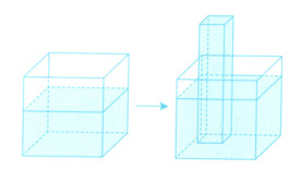 解析:先求出水的体积,将长方体柱垂直放入水中,水的体积不变,水箱内部底面积减去长方体柱的底面积就是此时水的底面积,用水的体积除以水的底面积即可求出水面的高度。