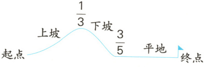 4. 骑行训练场由三部分路段组成,从起点到全程的$\frac{1}{3}$处是上坡路段,从全程的$\frac{1}{3}$到$\frac{3}{5}$处是下坡路段,其余的是平地路段,已知平地路段长8.4 m。全程为多少米?