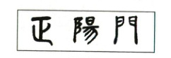 (示例1)甲 甲是古朴的篆书,能体现正阳门古老的特点。(示例2)乙 乙是端正的楷书,能体现正阳门端庄的特点。