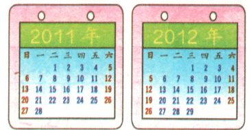 通过观察发现2011年2月有28天,全年有365天;2012年2月有29天,全年有366天。这是为什么呢?因为地球绕太阳转一圈大约需要365天5时48分46秒,为了方便,将一年定为365天,叫作平年,平年的2月份有28天。可是这样,每过4年差不多就要多出1天,把这一天加在2月里,这一年就有366天,叫作闰年,闰年的2月份有29天。
