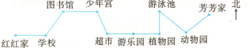 2. 芳芳从家出发,先向西南方向坐 1 站到动物园,再向西北方向坐 1 站到游泳池,再向南面坐 1 站到植物园,最后向西面坐 1 站到游乐园。