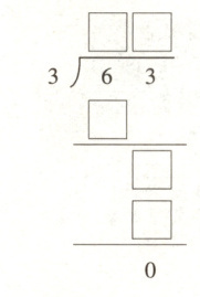 (2)把63个位上的( )落下来,用3除63个位上的3,在( )位上商( ),把商乘( )的积写在落下来的数的下面;然后把两数相减,差是( ),写在下面。