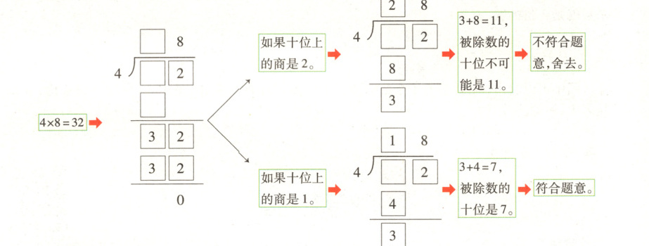 方法点拨:已知除数和商的个位上的数,求被除数,可先从商个位上的数与除数相乘的积算起。