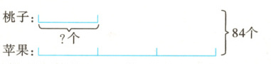 从图中可以看出,84就是桃子个数的(3+1)倍,求桃子的个数,就是把84平均分成4份,求每份是多少,用除法计算。
