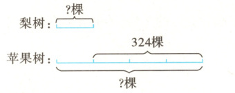 从线段图中可以看出,苹果树的份数比梨树多3份,这3份就是324棵。先把324平均分成3份,就可以求出梨树的棵数,再用梨树的棵数加324或用梨树的棵数乘4就可以求出苹果树的棵数。