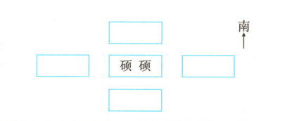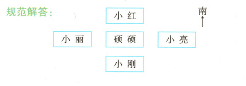 例2 在教室里,硕硕的东面是小丽,北面是小刚,南面是小红,西面是小亮。请你在下图中写出他们各自的相应位置。