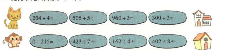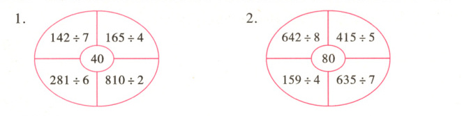 四、估一估,哪个算式的商最接近圈中的数,就把哪个算式框起来。(8分)