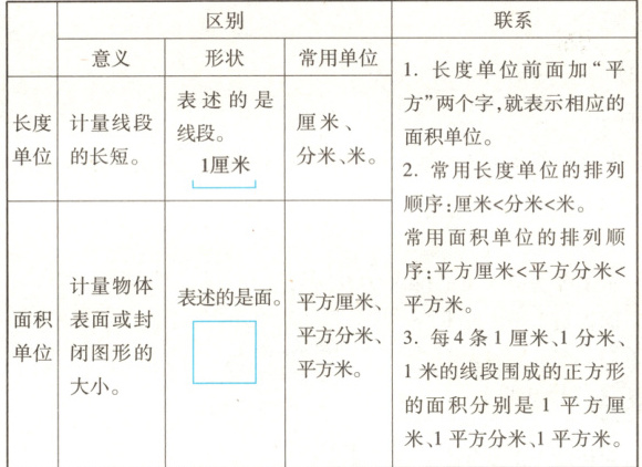 我们可以从两个方面来比较:①1厘米表示的是一条线段的长度,1平方厘米表示的是一个面的大小;②1厘米表述的是线段,1平方厘米表述的是面。
