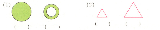 2. 比一比,下列每组中哪个图形的面积大?在面积大的图形下面的( )里画“√”。