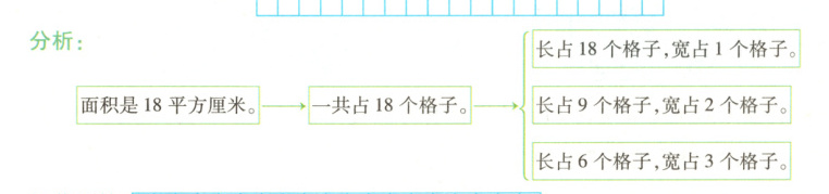 例1 下图中每个小方格表示边长1厘米的正方形,请你画出面积是18平方厘米的长方形,看谁的画法最多。