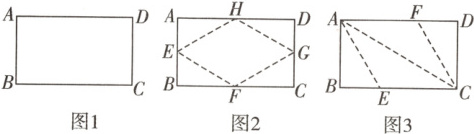 乙:如图3,沿矩形的对角线AC折出∠CAE = ∠CAD,∠ACF = ∠ACB的方法得到四边形AECF.