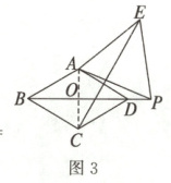 14. 在菱形ABCD中,∠ABC = 60°,P是射线BD上一动点,以AP为边向右侧作等边三角形APE,E的位置随点P位置的变化而变化,连接CE.
