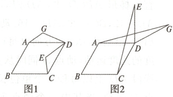 (2)如图2,当点B,D,G在同一条直线上时,若AD = 3,DG = 2$\sqrt{3}$,求CE的长。