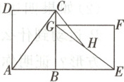 7. 如图,在矩形ABCD中,AC是对角线。将矩形ABCD绕点B顺时针旋转90°到矩形GBEF位置,H是EG的中点。若AB = 6,BC = 8,则线段CH的长为________。
