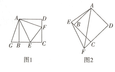 9. 已知,如图1,四边形ABCD是正方形,E,F分别在边BC,CD上,且∠EAF = 45°,我们把这种模型称为“半角模型”,在解决“半角模型”问题时,旋转是一种常用的方法。