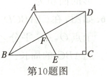 10. 如图,四边形ABCD中,AD//BC,∠C = 90°,AB = AD,连接BD,作∠BAD的平分线AE交BD,BC于点F,E. 若EC = 3,CD = 4,那么AE的长为______.