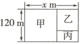 8. 有一块矩形土地,宽为120 m,建筑商把它分成甲、乙、丙三部分,甲和乙均为正方形,现计划甲建住宅区,乙建商场,丙地开发成面积为3 200 m²的公园. 如果设这块矩形土地的长为$x$ m,那么根据题意列出的方程是________________.
