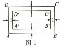 (1)如图1,若沿矩形ABCD四周有宽为1的环形区域,图中所形成的两个矩形ABCD与A'B'C'D'相似吗?请说明理由.