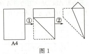 13. 如图1,将A4纸2次折叠,发现第一次的折痕与A4纸较长的边重合,如图2,将1张A4纸对折,使其较长的边一分为二,沿折痕剪开,可得2张A5纸.