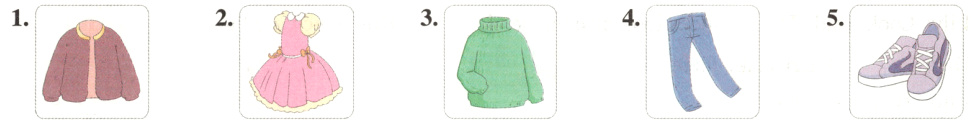 1.coat 2.dress 3.sweater 4.trousers 5.shoes