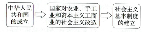 A 根据题干图片信息和所学可知,新中国的成立,开辟了中国历史的新纪元。中国人民经过一百多年的英勇斗争,终于推翻了帝国主义、封建主义和官僚资本主义的统治,国家通过调控经济生活、政治生活等来为自己的经济基础服务,国家通过对农业、手工业和资本主义工商业的社会主义改造,使社会主义基本制度建立起来,我国进入社会主义初级阶段,反映了上层建筑对经济基础的反作用,A项正确。