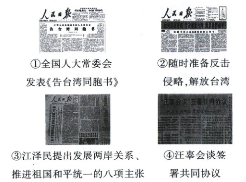 13.时空观念 下列报纸中,反映的两岸关系发展的基本史实出现的先后顺序是(H7204002) ( )