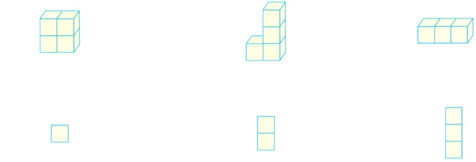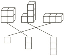 2. 第二行3个图形分别是第一行3个立体图形从左面看到的图形,连一连
