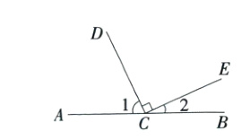 8.(2024北京五中期中,7,★☆☆)如图,C是直线AB上一点,CD⊥CE,图中∠1和∠2的关系是 ( )