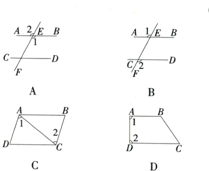 B A.∠1和∠2是对顶角,不能判定AB//CD,故此选项不符合题意; B.∠1和∠2的对顶角是内错角且相等,故AB//CD,此选项符合题意; C.∠1和∠2是内错角且相等,可以判定AD//BC,不能判定AB//CD,故此选项不符合题意; D.∠1和∠2是同旁内角,由∠1 = ∠2不能判定AB//CD,故此选项不符合题意.故选B.
