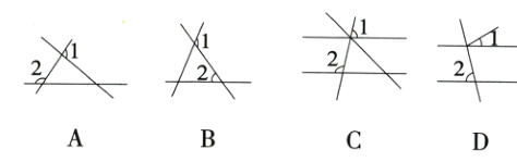 B 根据内错角的概念可知B选项中∠1与∠2是内错角.