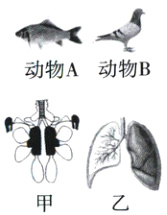 (4)图中能表示动物B的呼吸系统的是______(填“甲”或“乙”),它的呼吸方式为__________。当动物B飞行时,呼吸1次,在________(填器官名称)内进行_____次气体交换。