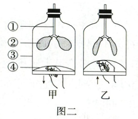 (3)我们在进行图一中过程A时,相当于图二中的过程__________(填“甲”或“乙”),此时膈肌处于__________状态。人体吸入的a气体最终要进入图一中的[ ]__________,参与分解有机物,释放能量。