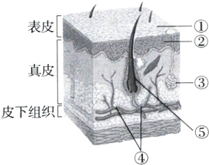 20.如图表示人体皮肤的结构,在炎热的环境中,加快散热依靠其中的 ( )