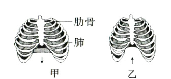 (2)如图 (填“甲”或“乙”)是运动员起跑前平静状态吸气时的示意图,此时肋骨间的肌肉和 收缩,肺内气压 ,于是外界气体被吸入。深呼吸时还有腹肌等肌肉的参与。