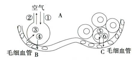 C 肺泡内的气体交换发生在肺泡与血液之间,是通过气体扩散作用实现的,肺泡内的氧气扩散进入血液,血液中的二氧化碳扩散进入肺泡,血液变成含氧丰富的动脉血,C错误。