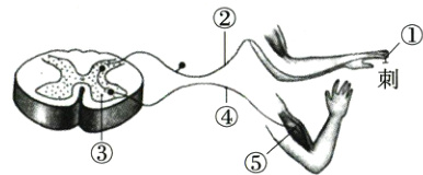 4.识图分析题.模式图(2023北京大兴二模)如果我们不小心被仙人掌上的刺扎到手,会产生缩手反射,然后感觉到疼。如图所示是缩手反射的结构图 ,下列叙述错误的是 ( )