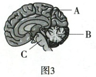 (3)图3是人脑的结构模式图,组成其结构的基本单位是____________。调节心跳、呼吸、血压等生命活动的中枢位于C______。