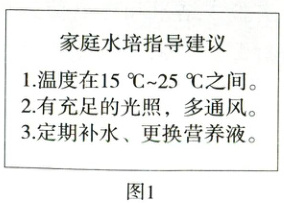 3. 跨学科·植物栽培类(2024江西中考)某同学在老师的指导下开展“巧用水培装置,实现家庭种植”实践活动。图1是该同学收集的家庭水培指导建议,图2是水培装置。请据图回答下列问题。