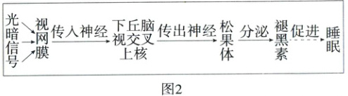 (1)由图2可知,光周期变化会引发松果体分泌褪黑素的量发生变化,这一活动属于反射,完成它的结构基础是__________,其中感受器是__________上的感光细胞。效应器是__________。