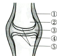 ①关节囊 ②关节头 ③关节腔 ④关节窝 ⑤关节软骨