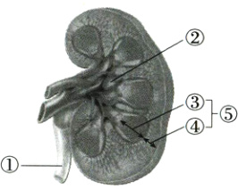 ①输尿管 ②肾盂 ③肾髓质 ④肾皮质 ⑤肾实质