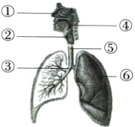 ①鼻 ②喉 ③支气管 ④咽 ⑤气管 ⑥肺